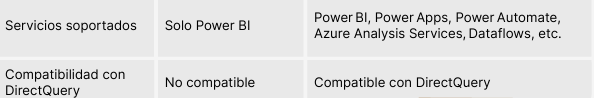 - Solo sirve para Power BI (no para otros servicios como Power Apps o Power Automate).