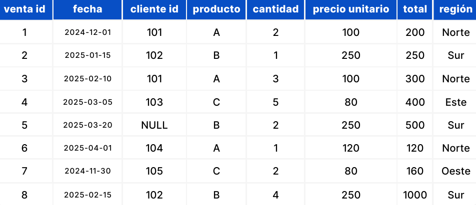 📘 Dataset de ejemplo: ventas