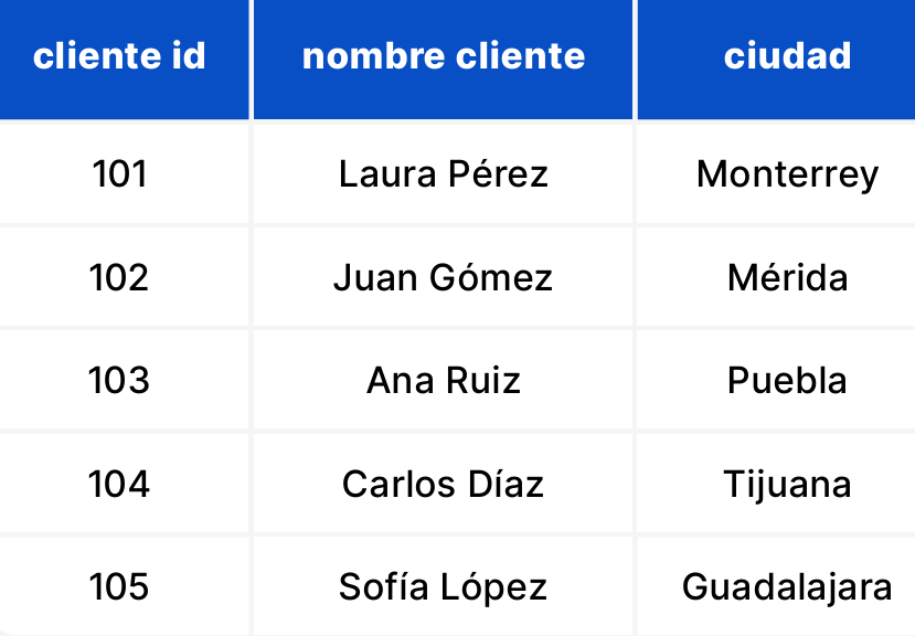 Veamos un ejemplo práctico con una tabla adicional llamada clientes: