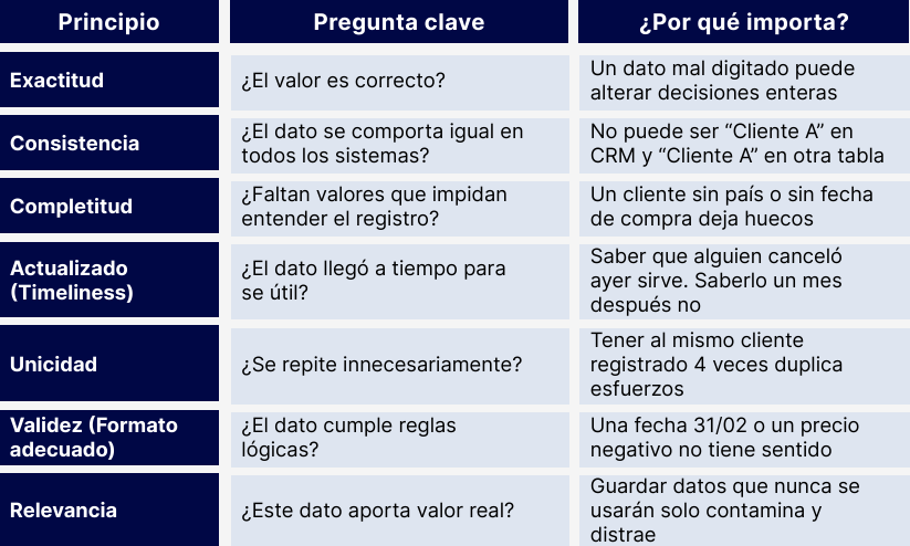 Los 7 principios clave de un dato de calidad (explicados sin tecnicismos)
