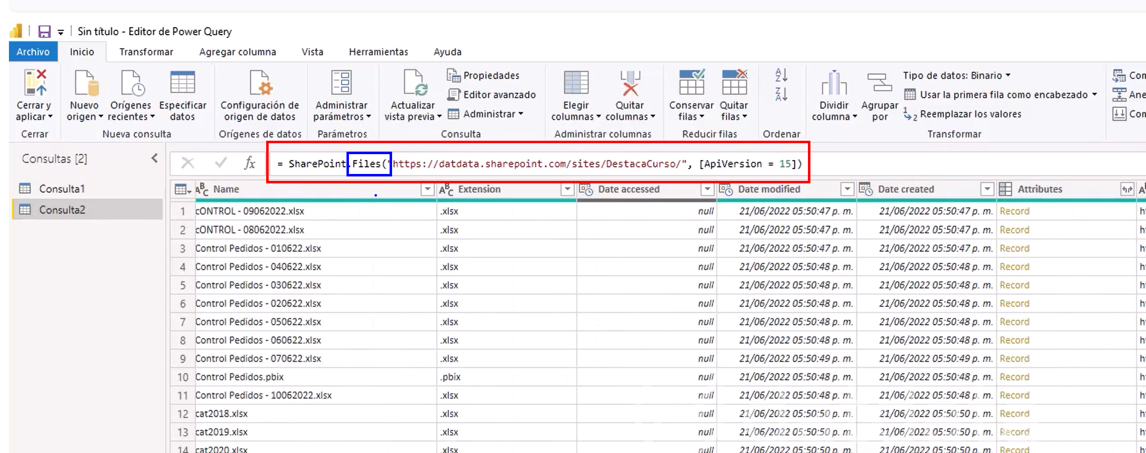 image.png1.41 MBAl conectarme a un sitio de one drive o sharepoint, cambio en la consulta "Files" por "Contents" eso crea una especie de tablas que son las carpetas del sitio se me hace más fácil la navegación y ubicación de archivos.