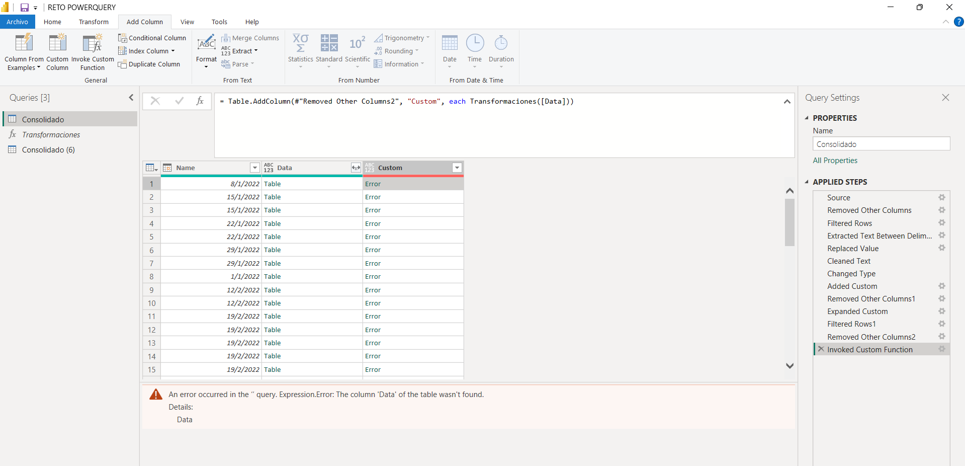 ya he creado mi custom function con as transformaciones para la tabla pero al momento de invocar la funcion, me dice que no encuentra el campo [Data]