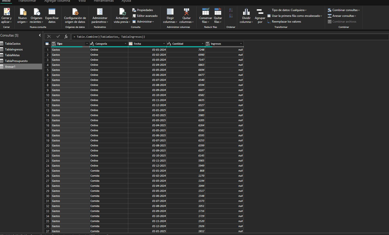 Hoila al hacer la consulta y anexarla me envia un mensaje de null en una columna nueva y el tipo los ingresos tambien dice null
