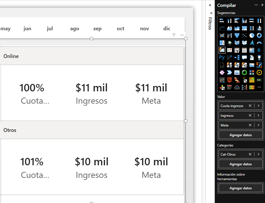 Hola compañeros, el gráfico de tarjeta que se utiliza en este tutorial ya no existe, batallé para poder configurar mi tarjeta como lo están explicando, por si alguien tiene el mismo problema, aquí les dejo como debe de configurarse. (Aún no puedo quitar la unidad de medida ya que en el buscador de formato no me aparece, ya pregunté en un módulo anterior pero aún no me contestan) SaludosCaptura de pantalla 2026-03-30 213043.png79.66 KB