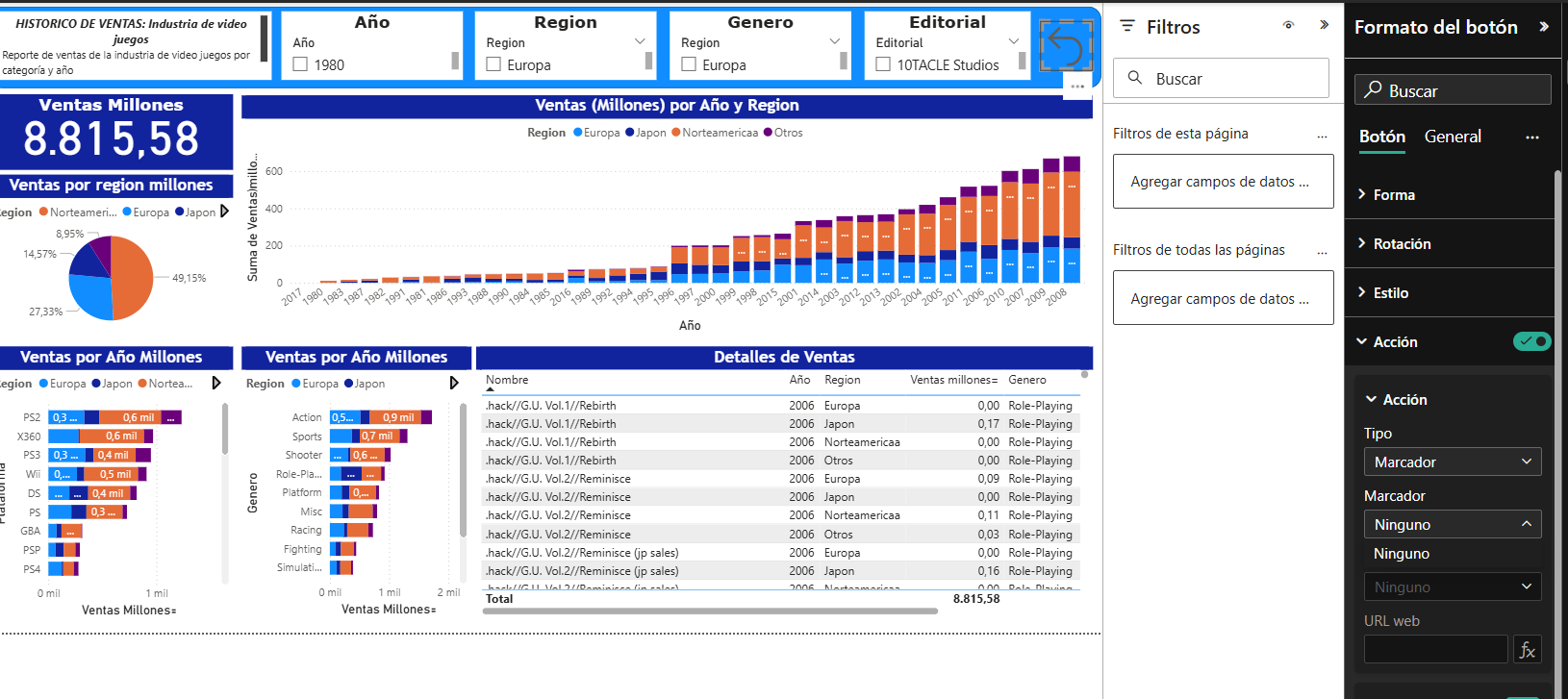 En la imagen en el panel de formato donde dice Marcador en Acción, debes seleccionar el marcador creado de restablecer.