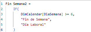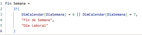 IF ( OR ( DimCalendar[CalendarDayOfWeekLabel] = "Tuesday", DimCalendar[CalendarDayOfWeekLabel] = "Friday" ) && DimCalendar[Día] = 13, "Mala Suerte", "Día Normal" )¡Saludos!