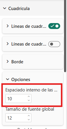 Hola Esteban! Si quieres hacer las columnas más anchas puedes hacerlo desde la misma matriz, colocando el mouse entre ambas columnas. O si deseas que las filas sean más anchas puedes utilizar esta opción desde el panel de Formato>Cuadricula: image.png16.73 KB¡Saludos!