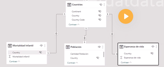 Hola Jesus, Mortalidad Infantil no puede relacionarse con Population, porque la tabla de Countries es la que se encargaría de filtrar las demás tablas por medio de sus relaciones: