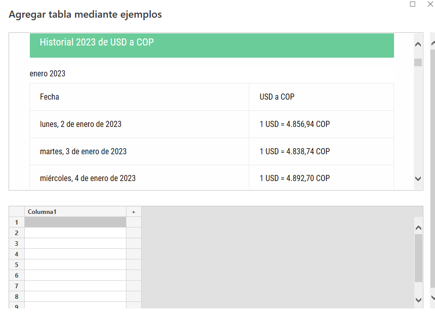 Posteriormente aparece así al importar datos de la web: