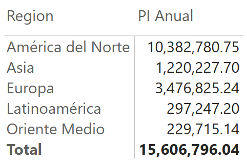 Partimos de la medida PI Anual, la cual calcula el promedio de ingresos por año, segmentada por Región en la siguiente matriz. CALCULATE_02.png38.02 KB