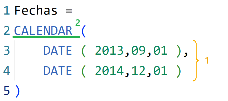 CALENDAR ( < fecha_inicio >, < fecha_fin > )