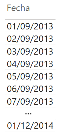 Función de fecha/hora que devuelve una tabla de una sola columna con todas las fechas en el intervalo definido por los argumentos de fecha inicial y final especificados.