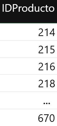 - VALUES recibe la columna SKUID de la tabla DatosVentas, extrae los ID de producto únicos y los guarda en una tabla virtual.