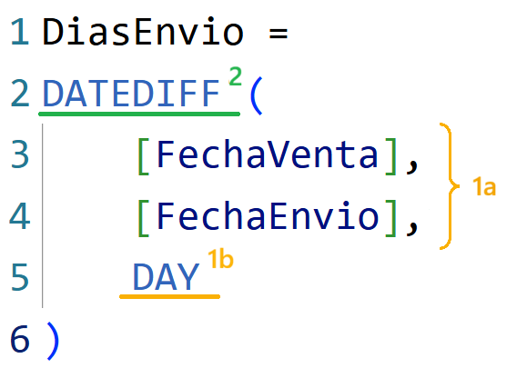 DATEDIFF ( < fecha1 >, < fecha2 >, < intervalo > )
