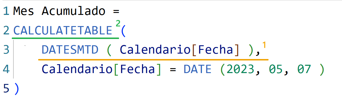 Función de inteligencia de tiempos que devuelve un conjunto de fechas definido desde el inicio del mes hasta la última fecha visible en el contexto de filtro.