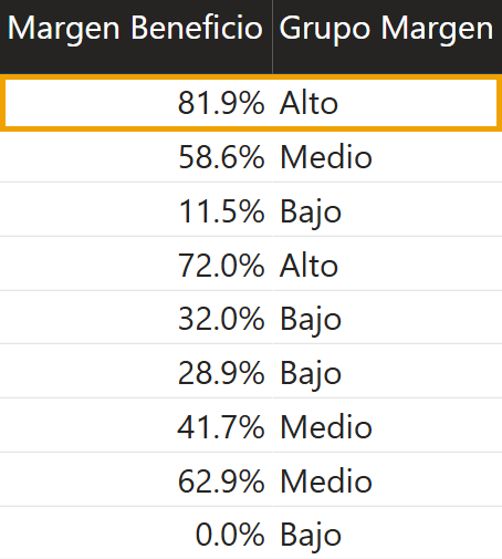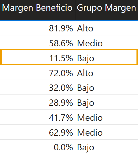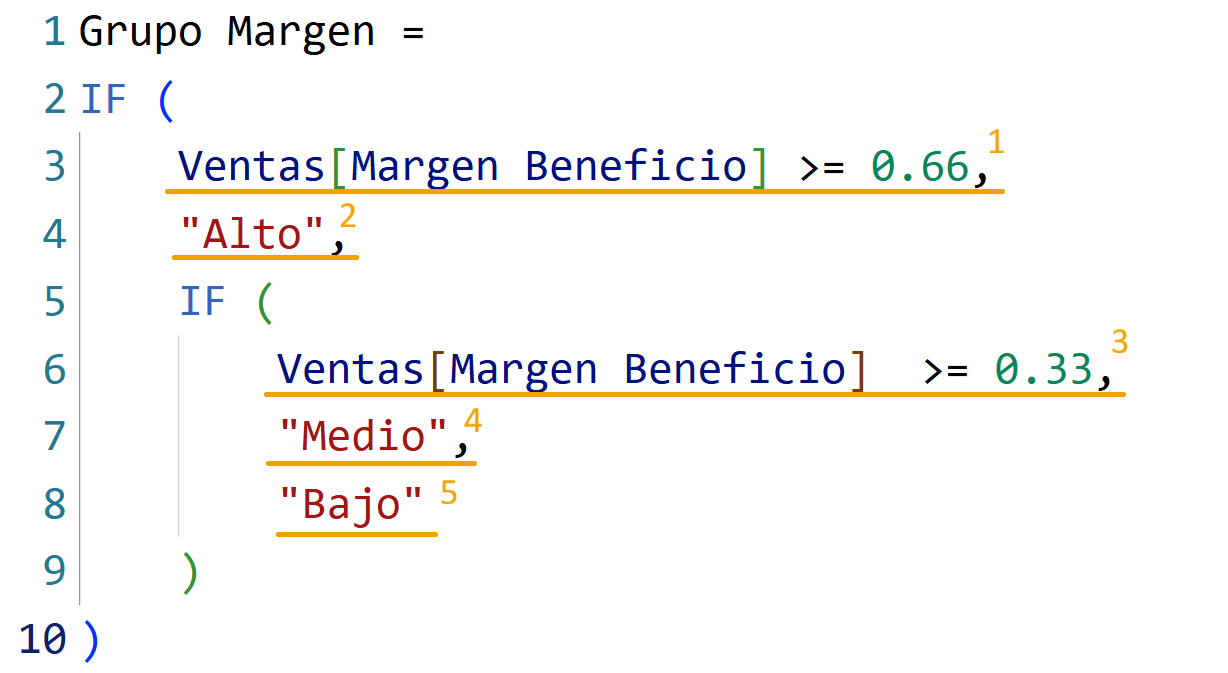 - Si no se cumple ninguna condición, la función devuelve un valor alternativo a los anteriores, “Bajo”.