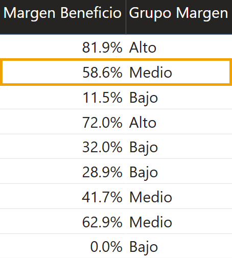 - Si se cumple, la función devuelve un valor secundario, “Medio”.