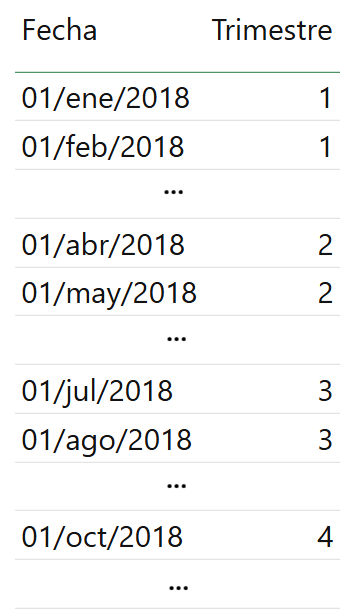 - <fecha>: fecha, expresión de fecha, o cadena de texto representando fecha cuyo trimestre se va a devolver.