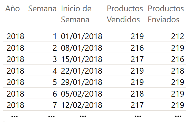 CALCULATE evalúa la expresión para el número de productos vendidos por semana, Productos Vendidos, utilizando la relación pertinente, produciendo así Productos Enviados, el número de productos enviados por semana. Compárese ambos resultados en la tabla. USERELATIONSHIP_02.png50.36 KB